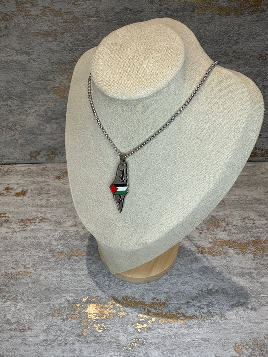 Palestine map necklace silver